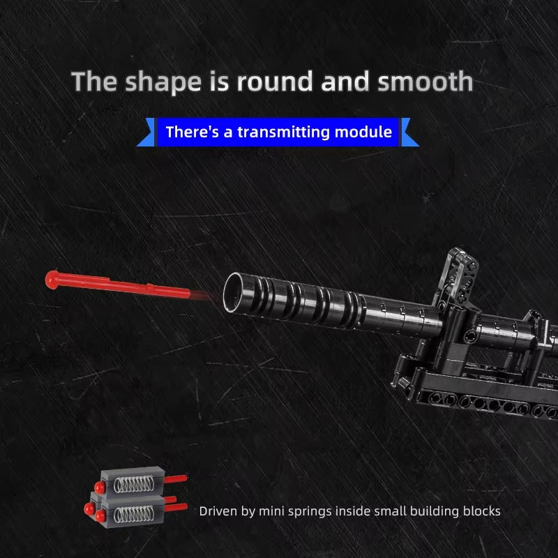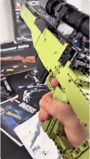 The brick MK-14 has the same features as the real one, including a working firing mechanism, a working scope, realistic reloading and shell ejection.