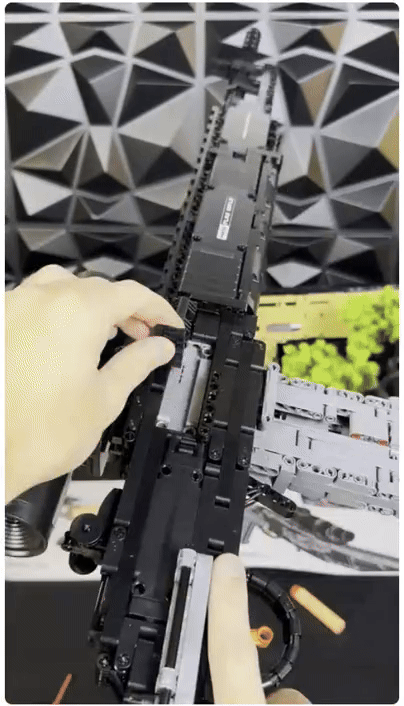 Our brick MK-14 is a true-to-life, functional replica of the original, reconstructed from building blocks in a 1:1 scale.